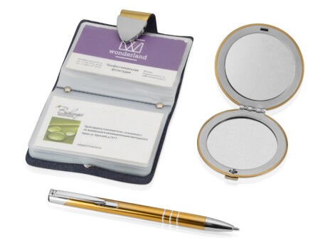 Набор «Чувства»: шариковая ручка, зеркало, визитница, золотистый (Р)