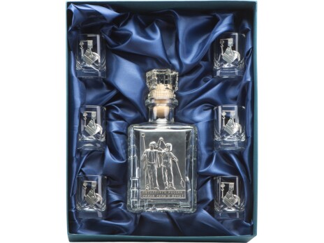 Для представителей настоящих мужских профессий и подарок должен быть соответствующий. Наш штоф, с набором рюмок, украшенный художественным литьем с эффектом антикварного серебра, является именно таким дорогим презентом. Подавать водку в графине всегда было правилом высшего общества. Алкогольный напиток предварительно очень сильно охлаждался, а после этого переливался в графин и, запотевший подавался на стол с рюмками. Набор для водки со штофом «Металлургический» - это отличный VIP-подарок для представителей металлургической отрасли. Подарок упакован в стильную подарочную упаковку, а сохранность набора гарантирует шелковый ложемент, который приятно оттеняет литье.