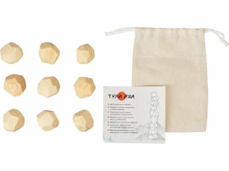 - Комплектность - деревянные камни разных форм- 9 шт, мешочек из неокрашенного хлопка, инструкция