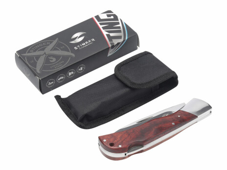 Нож складной Stinger, 104 мм, (серебристый), материал рукояти: сталь/дерево (серебристо-коричневый)