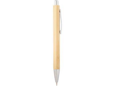 Набор Oblys состоит из шариковой ручки и механического карандаша, корпуса которых изготовлены из бамбука. Шариковая ручка имеет черный стилус и хромированный металлический зажим. Цвет чернил: черный. Размер пера: 1,00 мм. Длина непрерывной линии: 600 метров. Механический карандаш также имеет хромированный металлический зажим. Размер пера: 0,5 мм.