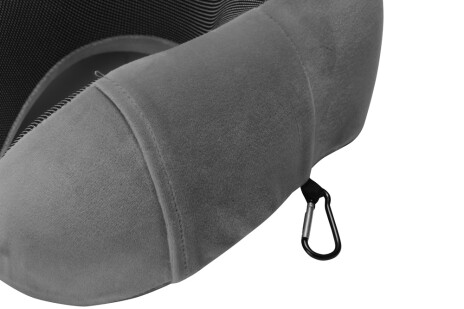 Комфортная подушка для путешествий с эффектом памяти имеет анатомически удобную для шеи форму, которая позволяет разместиться с комфортом во время путешествия. Подушка имеет кармашек, в который можно положить небольшие мелочи, которые сделают путешествие еще удобнее: платок, маску, беруши, наушники, словом, то, что вам может понадобиться во время перелета. Мягкий приятный тактильно материал позволяет расслабиться в объятиях этой подушки, а чехол для переноски и карабин для крепления делают хранение и использование еще удобнее. Застежка на шее позволяет регулировать положение, чехол можно снять и постирать на режиме, который указан на ярлычке. Дышащий материал на внутренней части чехла подушки делает ее идеальным компаньоном для поездок даже в жарком климате.