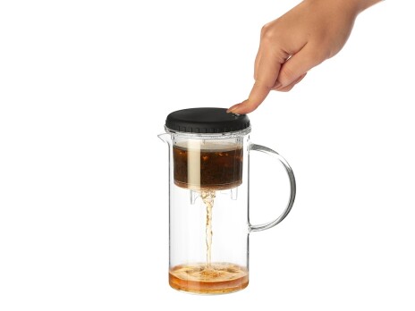 Конструкция заварочного чайника «Gunfu» от Eat&Bite позволяет очень тонко управлять крепостью получаемого чая, с ним вы можете не переживать о том, что напиток перезаварится. «Gunfu» оснащен двумя колбами: внутренняя поменьше с ситом — для заваривания и внешняя большая — для уже заваренного чая. В крышке чайника есть кнопка, при нажатии на которую, заваренный чай переливается в большую колбу. Чайник обязательно понравится любителям китайских чайных церемоний, где чаи нужно заваривать многократно в течение определённого времени — здесь просто нужно будет вовремя нажать на кнопку. «Gunfu» прост в уходе: внутренняя часть легко достаётся, а стеклянную колбу можно мыть в посудомоечной машине. • Заваривание чая методом пролива • Термостойкое боросиликатное стекло • Soft touch крышка с кнопкой • Прост в уходе • Идея подарка ценителям китайских чаев