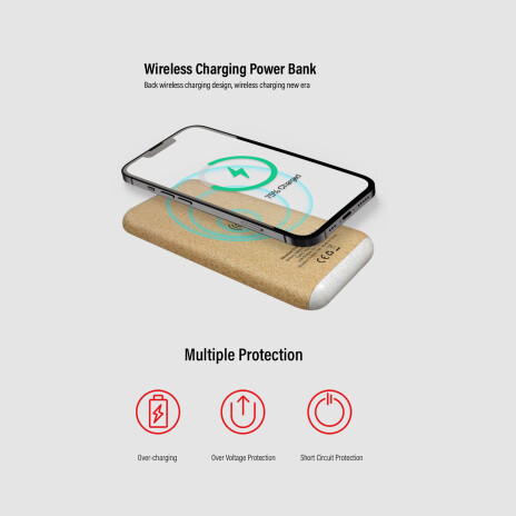 Беспроводное зарядное устройство "Cork Power" 10000 mAh, пластик/пшеничное волокно/пробка