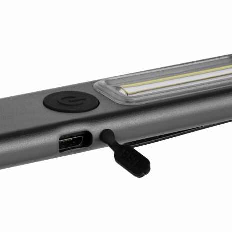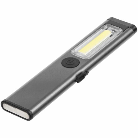 Плавная регулировка яркости осуществляется удержанием центральной кнопки при включенном устройстве — это позволяет точно адаптировать освещение под рабочие условия. Магнит в основании фонарика дает возможность зафиксировать фонарик на металлической поверхности и освободить руки для выполнения задач.