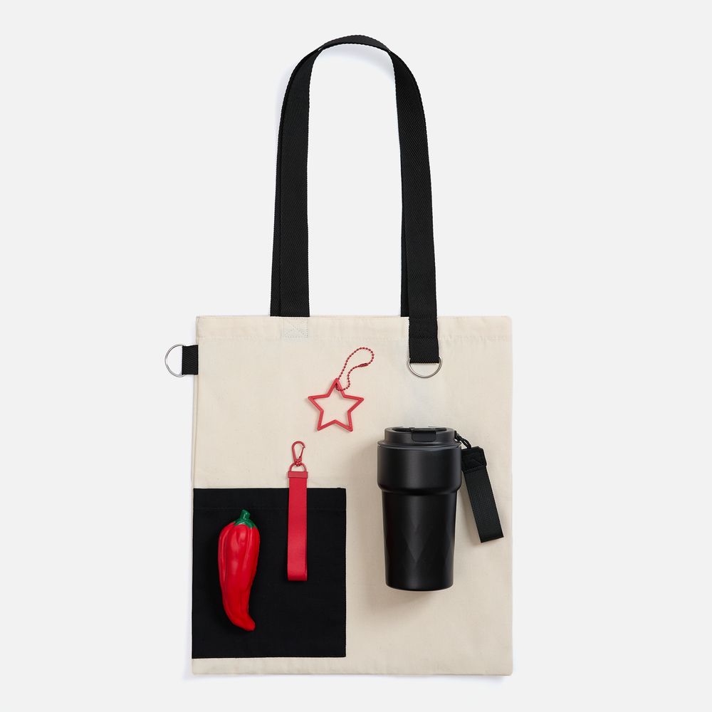 В стильном и удобном шопере собрано все для уверенного дня: термостакан для напитков идеальной температуры поможет поддержать настрой и вовремя пополнить энергию, сквиши-антистресс мгновенно разгрузит голову, а яркие ремувка и подвеска дополнят комплект и легко подстроятся под корпоративный стиль. Опция замены подвески под логотип с помощью 3D-печати позволит сразу заявить о себе и ненавязчиво подчеркнуть уникальность бренда.