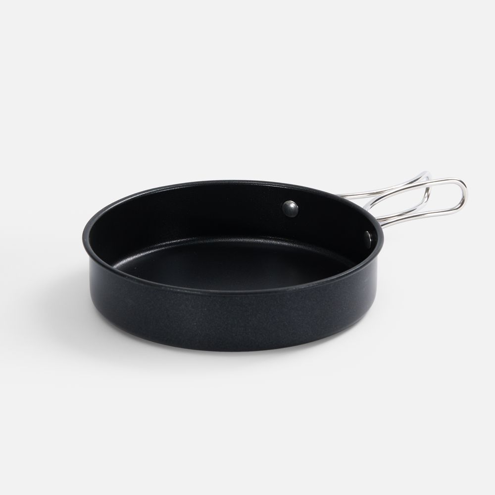 Продуманный дизайн набора позволяет сохранять место в походном рюкзаке: посуда со складными ручками компактно упаковывается в сетчатый чехол, который также входит в комплект.
