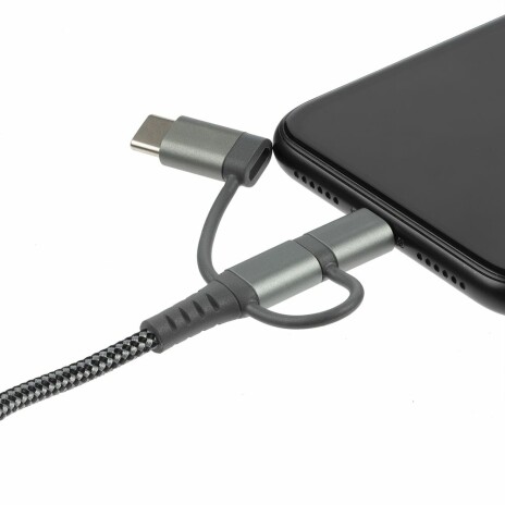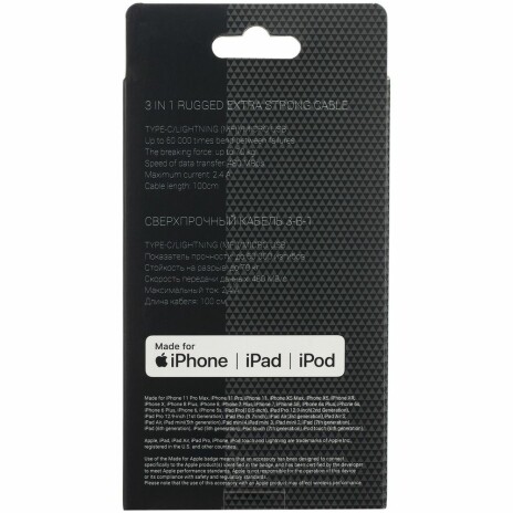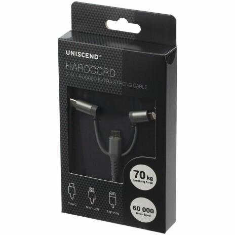 - Прочный кабель в текстильной оплетке выдерживает до 60 000 сгибаний и натяжение на разрыв до 70 кг