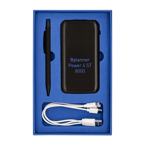 Набор Bplanner Power – отличный вариант для welcome pack! Он содержит все самое необходимое: емкий внешний аккумулятор Bplanner, металлическую ручку и подарочную коробку с цветным ложементом.