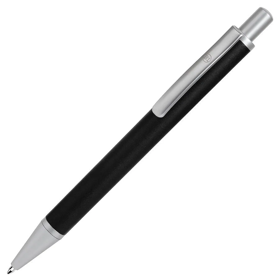Практичная и удобная модель ручки. Классические формы корпуса, надежный пишущий узел, “шелковая” формула чернил Dokumental. Комфортное и легкое письмо без особого нажима! • Цвет, близкий к Pantone Black. • Металлический корпус и клип. • Нажимной механизм подачи стержня. • Пулевидный пишущий узел 1.0 мм. • Длина линии письма 1000-1200 м. • Цвет чернил синий. • Сменный стержень Parker style. • Виды нанесения: лазерная гравировка, тампопечать.