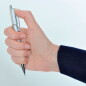 Эта модель ручки подойдет для тех, кто любит сначала записать основные мысли прежде, чем приступить к работе. Современный дизайн и необычный механизм подачи стержня привлекают внимание. Легкое и гладкое письмо не создает трудностей при работе с этим пишущим инструментом.