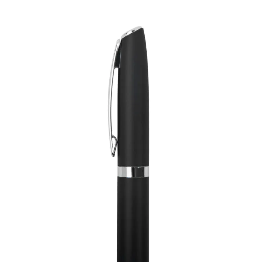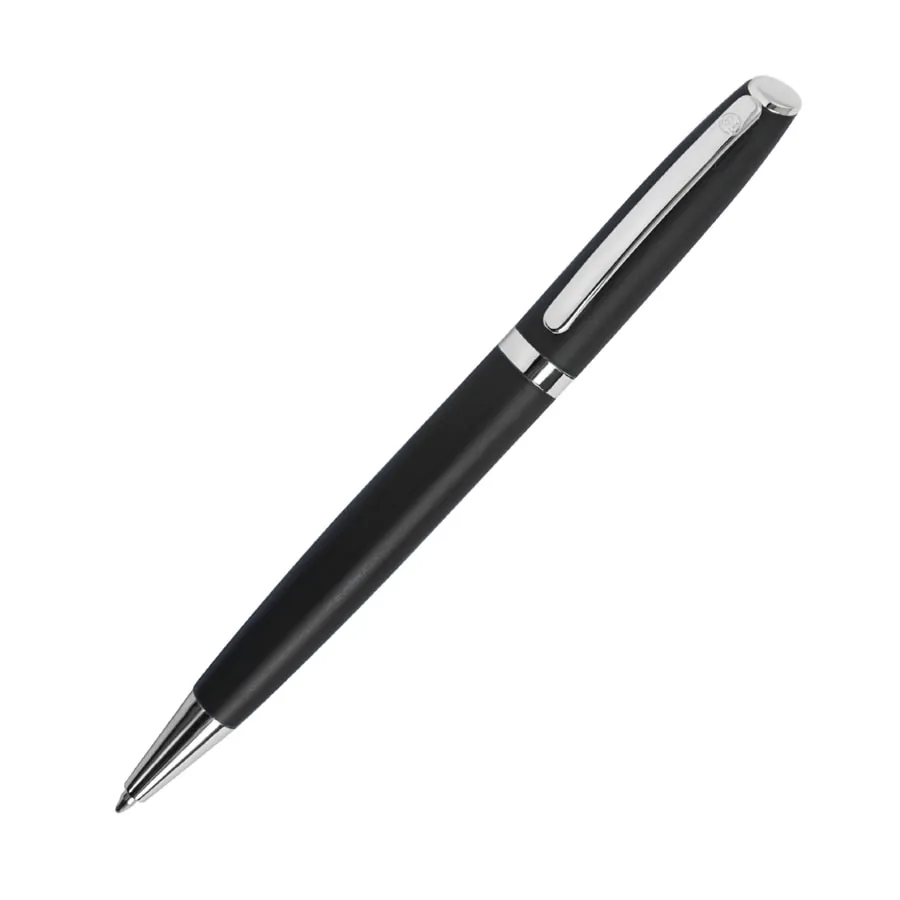 • Цвет близкий к Pantone Black C.• Металлический корпус и клип. • Поворотный механизм подачи стержня.• Пулевидный пишущий узел 1.0 мм.• Шарик из карбида вольфрама. • Длина линии письма 1000 м.• Цвет чернил синий.• Сменный стержень Parker Type.• Виды нанесения: лазерная гравировка, тампопечать.