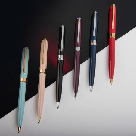 ручка шариковая с доводчиком Цвет, близкий к Pantone 2218С, стержень Metal Parker Type, синий толщина пишущего узла 0,7 мм