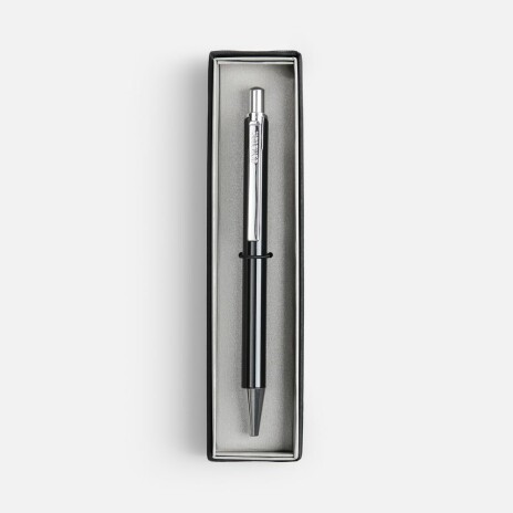 Шариковая ручка Arvent в лакированном корпусе с хромированными деталями. Футляр из дизайнерской бумаги с контрастным коробом придает подарку законченный и элегантный вид.