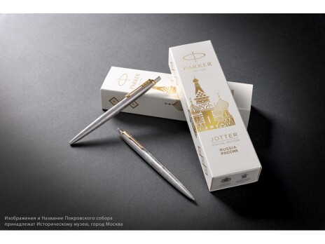 С 1954 года ручка Parker Jotter стала самым популярным инструментом для письма в повседневной жизни, отвечая большинству запросов потребителей. И вот в 2020 году Parker представляет новую модель Parker Jotter Russia Special Edition 2020. Parker Jotter Russia Special Edition 2020 первая модель в коллекции Parker Jotter - посвященная России. Аутентичный и образцовый дизайн Parker Jotter. Ручка Parker Jotter Russia Special Edition 2020 сделана из тщательно отполированной нержавеющей стали. Для основного рисунка был выбран Покровский собор (Храм Василия Блаженного) - православный храм на Красной площади, памятник русской архитектуры 16 века. Он выгравирован на корпусе ручки. Лазерную гравировку собора дополняет витиеватый узор. Клип-стрела покрыт золотом гальваническим методом. Изображения и название Покровского собора принадлежат Историческому музею, город Москва. Ручка упакована в подарочную коробку цвета слоновой кости также с изображением Покровского собора в золоте. *Изображения и Название Покровского собора принадлежат историческому музею, г. Москва.