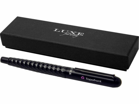 Ручка-роллер с эксклюзивным дизайном сочетает в себе шикарный внешний вид и надежность. Корпус эргономичен для использования. Ручка заправлена черными чернилами и упакована в подарочную коробку LUXE. Подарочный набор можно дополнить стилусом или шариковой ручкой с нажимным механизмом. Алюминий.