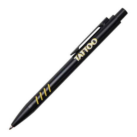 Цветные грип-вставки, контрастирующие с полностью черным корпусом - не единственная особенность TATTOO. На этой ручке возможна двухцветная 3D-гравировка. Зеркальная подложка в цвет прорезиненных вставок в сочетании с белым матовым покрытием позволяют получить эффект объема при нанесении логотипа или рекламного сообщения. Pantone, близкий к 103С.