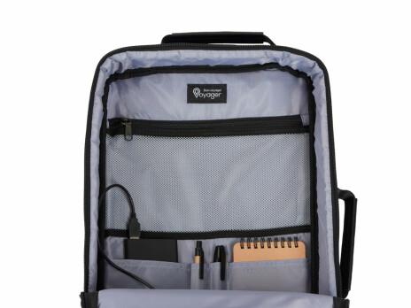 Рюкзак может легко превратится в деловую сумку для командировок, т.к. снабжен дополнительной ручкой для переноски в руке. В комплекте идет съемный металлический шильд под нанесение вашего логотипа. - большой наружный карман на молнии - основное отделение с органайзером с несколькими карманами, в том числе сетчатым на молнии - потайной карман на спинке - USB выход со шнуром - ремень для крепления на ручку чемодана - нетканый мешок для хранения в комплекте