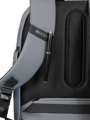 В рюкзаке Bobby Edge идеально сочетаются современный дизайн, комфорт и безопасность. Он подойдет как для повседневного использования, так и для поездок, а ассортимент цветов позволит выбрать подходящий и для женщин, и для мужчин. Конструкция рюкзака легкая, прочная и хорошо держит форму. Водоотталкивающая внешняя поверхность и водонепроницаемая молния надежно защитят вещи от дождя и снега. Внутри — одно основное отделение с продуманной системой организации вещей. Множество карманов позволит взять с собой все, что может понадобиться в путешествии или то, без чего не обойтись каждый день. На спинке и на лямке рюкзака располагаются потайные карманы с RFID-защитой: в них можно положить кошелек, телефон или банковские карты. Bobby Edge открывается на 180º, что значительно упрощает доступ к вещам внутри. Помимо привычной скрытой молнии в этом рюкзаке предусмотрен новый пуллер (собачка молнии). Он изготовлен из металла и оснащен функцией самоблокирования — это обеспечивает дополнительную защиту от карманников. Антикражный рюкзак Bobby Edge от XD Design изготовлен из переработанных пластиковых бутылок. Подходит для ноутбука диагональю до 16’’. Сертифицировано AWARE™. Наличие индикаторных частиц AWARE™ подтверждает, что мы действительно используем переработанные материалы. 2% с продажи каждой вещи, отмеченной сертификатом AWARE™, мы перечисляем в поддержку всемирной организации Water.org.