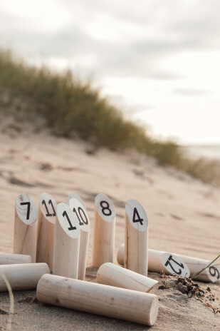 Веселая тактическая игра на свежем воздухе, состоящая из двенадцати пронумерованных цилиндров и биты для метания. Цель игры — первым набрать ровно 50 очков. Игра упакована в мешочек из канваса. Данная продукция предназначена для взрослых и детей старше 14 лет.