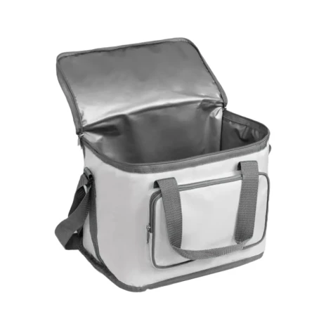 Сумка-холодильник из прочного полиэстера 600D с внутренней отделкой из PEVA (термопластик). На ручках предусмотрена вставка из нейлона для усиления прочности. Регулируемая длина наплечного ремня. BPA-free (не содержит бисфенол-А).