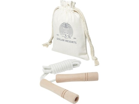 Совмещайте приятное с полезным с этой скакалкой для взрослых. Трос выполнен из хлопка, а ручки сделаны из буковой древесины. Длина троса составляет 310 см, поэтому эту скакалку могут использовать взрослые ростом до 195 см. Ручки (12 x 2,5 см) имеют эргономичную форму, обеспечивающую удобный захват. Поставляется с хлопковым чехлом для хранения (18 x 13 см). В качестве экологически чистого варианта декорирования рекомендуется лазерная гравировка.