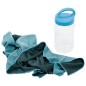 При хранении в бутылке полотенце сохранит охлаждающий эффект в течение нескольких часов. Благодаря крышке-карабину ее удобно прицепить на рюкзак или сумку.