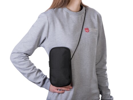 Мобильный чехол из полиэстера RPET. Основное отделение с застежкой-молнией. Внешний карман. В комплект входит шнурок для переноски. Длина шнурка 122 см.