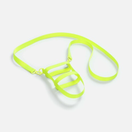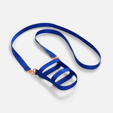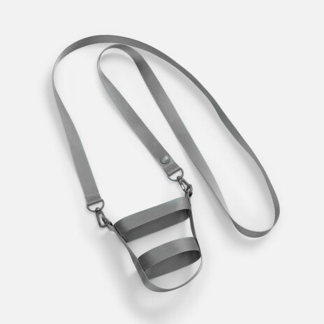 Сумка для бутылки Kesta из стропы построена по принципу конструктора из нескольких обязательных элементов: текстильных строп Fune 20 разной длины, двух застежек-карабинов и двух полуколец. Благодаря такой системе сумка легко адаптируется под конкретную бутылку — учитывает ее форму, диаметр и высоту, обеспечивая плотную посадку и комфорт при переноске.