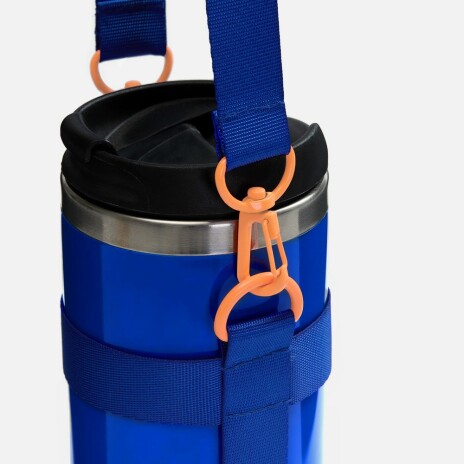 При оформлении заказа добавьте нанесение «Крепление (кастомизация)» на полукольцо или карабин и сделайте его групповым для бутылки.