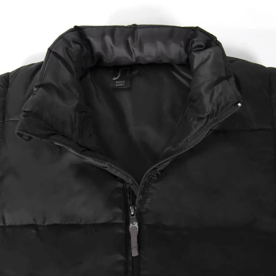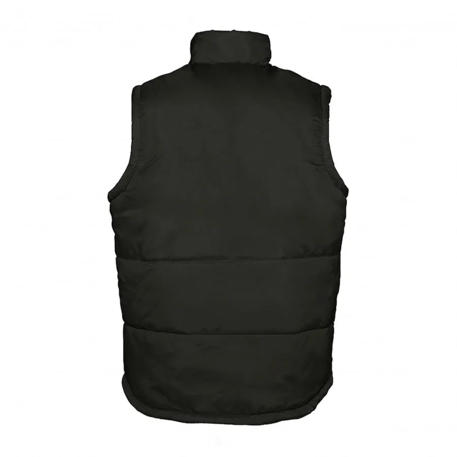 Жилет утеплённый WARM c контрастным подкладом и воротником-стойкойУтеплитель: синтепон, 220 г м²Верхний слой: нейлон с пропиткой от ветра и дождя, 210TЦентральная молния с чёрным пулером,Два наружных кармана на молнии,Широкая стёжка, Современный прямой крой, Два внутренних потайных кармана,Петля для подвешивания в шве горловины.Верхний материал, близкий по цвету к PANTONE Black