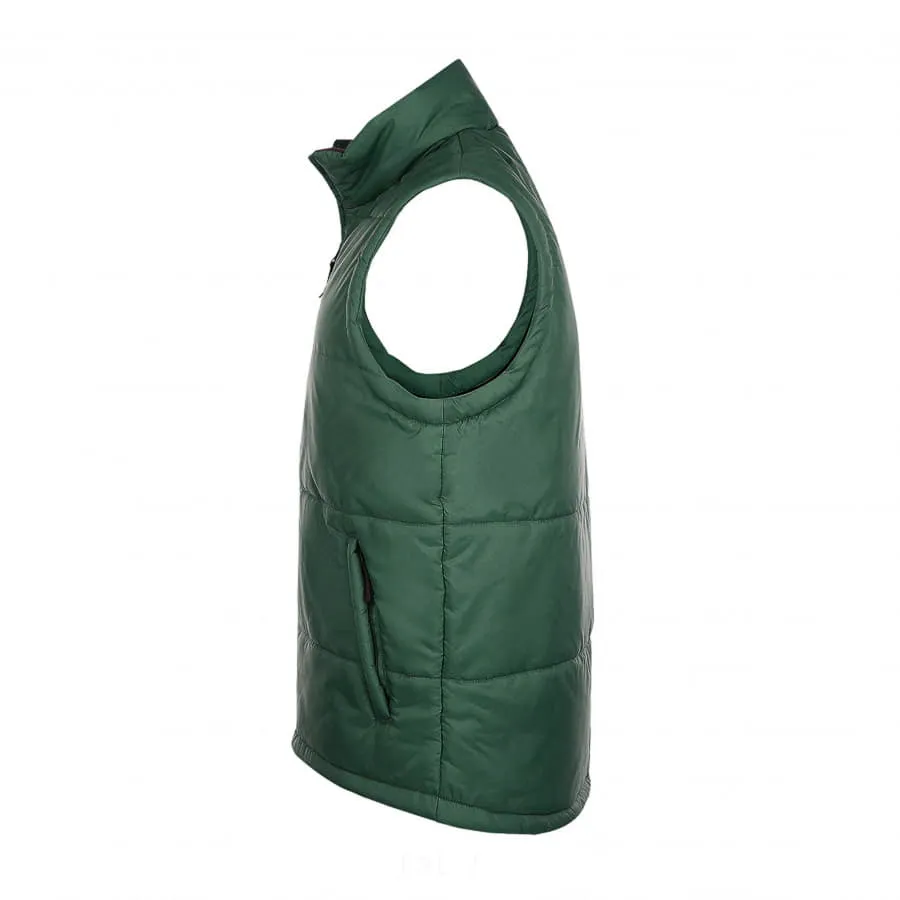 Жилет утеплённый WARM c контрастным подкладом и воротником-стойкойУтеплитель: синтепон, 220 г м²Верхний слой: нейлон с пропиткой от ветра и дождя, 210TЦентральная молния с чёрным пулером,Два наружных кармана на молнии,Широкая стёжка, Современный прямой крой, Два внутренних потайных кармана,Петля для подвешивания в шве горловины.Верхний материал, близкий по цвету к PANTONE 446C