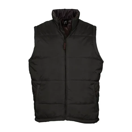Жилет утеплённый WARM c контрастным подкладом и воротником-стойкойУтеплитель: синтепон, 220 г м²Верхний слой: нейлон с пропиткой от ветра и дождя, 210TЦентральная молния с чёрным пулером,Два наружных кармана на молнии,Широкая стёжка, Современный прямой крой, Два внутренних потайных кармана,Петля для подвешивания в шве горловины.Верхний материал, близкий по цвету к PANTONE Black