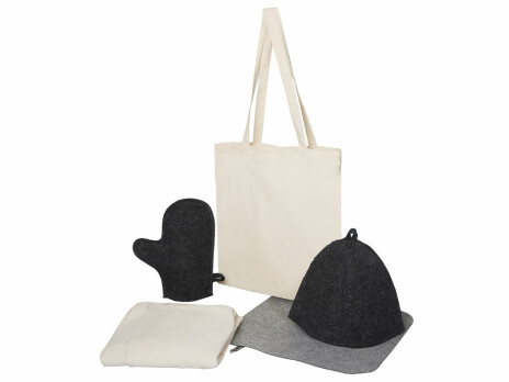 Для настоящего любителя пара — холщовый килт, рукавица, шапка и коврик, упакованные в хлопковый шоппер, создадут настроение и уют в каждой бане.
