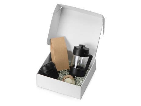 Подарочный набор с кофе, кружкой и френч-прессом "Бодрое утро", черный