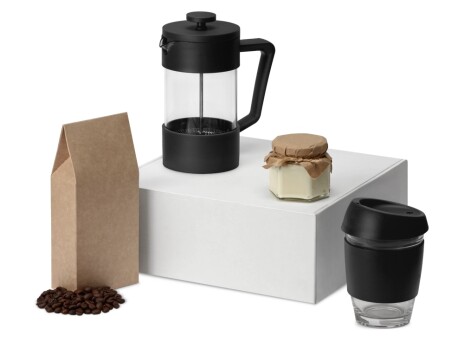 - Подарочный набор с кофе, кружкой и френч-прессом "Бодрое утро", черный
