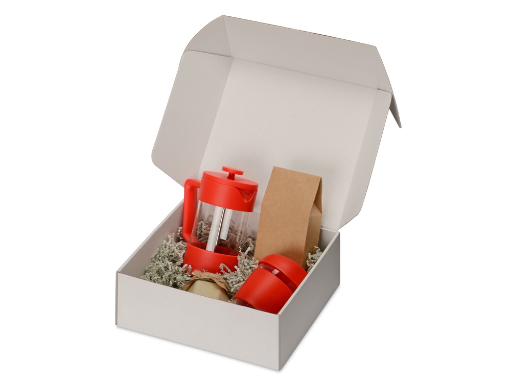 - Подарочный набор с кофе, кружкой и френч-прессом "Бодрое утро", красный