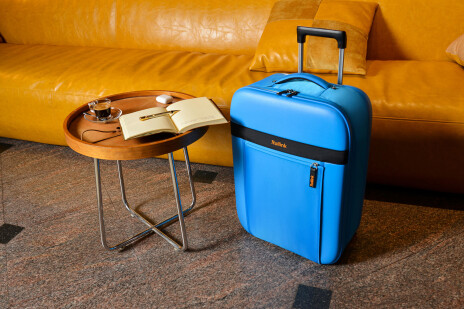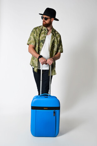 Складной легкий чемодан Rollink Aura ярко-синего цвета. Размер 55х40х20 см. В сложенном виде толщина составляет 8,5 см, с колёсами 10,5 см. Объем 40 л. Вес 2,5 кг. Жесткие стенки сделаны из поликарбоната повышенной ударопрочности. Бока мягкие, из плотного нейлона с высокой водоотталкивающей способностью и высококачественной молнией в цвет чемодана. Чемодан уверенно стоит вертикально даже в сложенном состоянии. Внутри три откидывающихся жестких клапана на дне и боках чемодана, крепятся липучками и сохраняют форму чемодана в собранном виде. Внутри чемодана эластичная Х-образная стяжка для фиксации предметов и большой сетчатый карман на молнии. На передней стенке чемодана расположен большой easy access карман 24х34 см на водозащищенной молнии с несколькими отделениями для ноутбука, документов и мелочей. Удлиненная надежная выдвижная телескопическая ручка из алюминия с несколькими уровнями фиксации высоты ручки (от пола 86/97/107 см) для людей разного роста и удобная мягкая ручка сверху чемодана, чтобы было удобно нести его в руках. 2 колеса со специальным покрытием и подшипниками для более плавного и бесшумного передвижения. Вшитая эластичная стяжка с магнитной пряжкой фиксирует чемодан в сложенном состоянии. Упакован в индивидуальную белую картонную коробку 58х42х11 см с ручкой. Технические характеристики: Колеса рассчитаны на 32 км Чемодан не разбивается при падении с высоты 90 см Стенки из поликарбоната выдерживают удар 32 кг Телескопическая алюминиевая ручка рассчитана на 300 выдвижений Мягкая ручка рассчитана на 500 поднятий Молния рассчитана на 5000 открываний