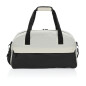 Дорожная сумка Kazu станет незаменимым спутником для спортсменов и тех, кто часто ездит в командировки и поездки. Помимо внутреннего отделения, сумка оснащена двумя карманами. Во внутреннее отделение поместятся нужные в дороге или на тренировке вещи, а в боковой — обувь. В наружный карман можно положить необходимые мелочи. Черные вставки, ручки и плечевой ремень играют роль контрастного акцента. Дорожная сумка изготовлена из переработанных пластиковых бутылок, поэтому она станет хорошим подарком для тех, кто заботится об экологии. Содержание вторичных материалов: 100%. Сертифицировано AWARE™. Наличие индикаторных частиц AWARE™ подтверждает, что мы действительно используем переработанные материалы. 2% с продажи каждой вещи, отмеченной сертификатом AWARE™, мы перечисляем в поддержку всемирной организации Water.org.