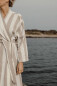 Стильный халат VINGA Ornos просто создан для пляжа и отдыха. Легкий и воздушный материал объединил в себе мягкость хлопка и простоту полиэстера — благодаря нему полотенце быстро сохнет. Изделие выполнено в классическом стиле с двухцветными полосками. Для максимального удобства предусмотрены карманы, рукава 3/4 и пояс на талии. Сертификация GRS (Global Recycled Standard) гарантирует, что вся цепочка поставок переработанных материалов проверена и подтверждена. Содержание вторсырья от общего веса изделия: 69% переработанный хлопок и 29% переработанный полиэстер. Плотность ткани: 200 г/м².
