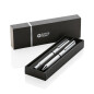 Набор, состоящий из двух ручек Cedar, станет отличным подарком для деловых людей. Стильные и функциональные, они изготовлены из переработанного алюминия. Если уронить такую ручку, она не сломается, не треснет, на ней не останется никаких следов. К тому же, алюминий — уникальный материал, который можно перерабатывать бесконечно и не терять при этом его свойств. Набор экологичен и подходит для тех, кто заботится о природе. А что насчет внешнего вида? Строгие, минималистичные, но при этом эффектные ручки станут вашими спутниками при подписании самых важных договоров. Стержня с синими чернилами хватит на 1 200 метров письма, а длина письма роллера — 400 метров. Все переработанные материалы имеют сертификат RCS, который гарантирует полный контроль цепочки поставок переработанных материалов.