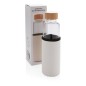 Стеклянная бутылка с текстурированным чехлом из PU идеально подойдет тем, кто не хочет пить из пластика. Стеклянная бутылка закрывается герметичной крышкой из бамбука. Широкое горлышко позволяет комфортно пользоваться бутылкой, а нескользящий чехол из PU защищает стекло от внешнего воздействия и добавляет стильный штрих. Объем 550 мл.