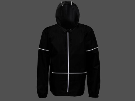 Короткий дождевик прямого силуэта с капюшоном и карманами. Вместительные накладные карманы защищены сверху клапанами, по верхней кромке которых вшит светоотражающий кант. Светоотражающие элементы также расположены на рукавах, капюшоне и молнии, что делает человека заметным даже в темное время суток. Капюшон и низ дождевика затягиваются на шнурки с фиксаторами, что позволяет отрегулировать посадку по фигуре. Манжеты дождевика — на резинке. Поставляется в чехле-мешочке на шнурке для компактного хранения.