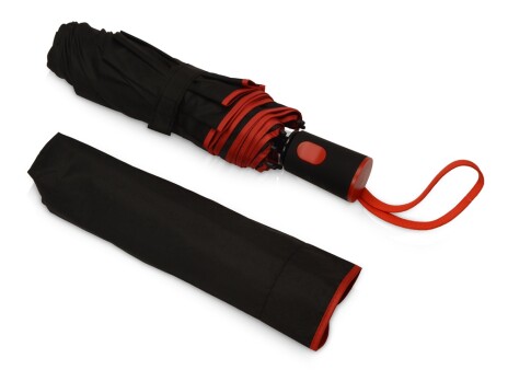 Зонт-полуавтомат складной Motley с цветными спицами, черный/красный