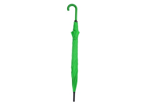 Автоматический зонт с тканью и ручкой в тон. Спицы и наконечники черного цвета. Застежка на липучке. 105 см в диаметре.