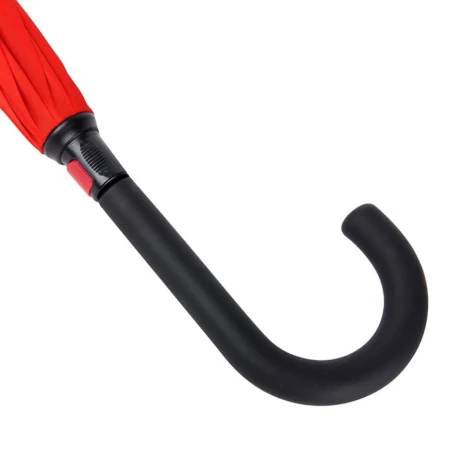 Зонт-трость, механический.Диаметр купола: 106 см., длина стержня 77 см.Состав купола: 100% полиэстер 190T.Состав стержня: металл.Состав спиц: стекловолокно.Ручка: пластик с покрытием soft-touch. Цвет купола: внешняя часть чёрная, внутренняя часть красная цвет близкий к пантону 199 С.