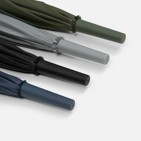 Современная модель зонта-трости с эргономичной ручкой, каркасом из стеклопластика и увеличенным размером купола.
